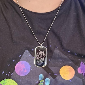 The dog tag looks better in person and the quality is nicer than I expected. I also like that the chain has a nice lobster clasp instead of a traditional chain connector.
